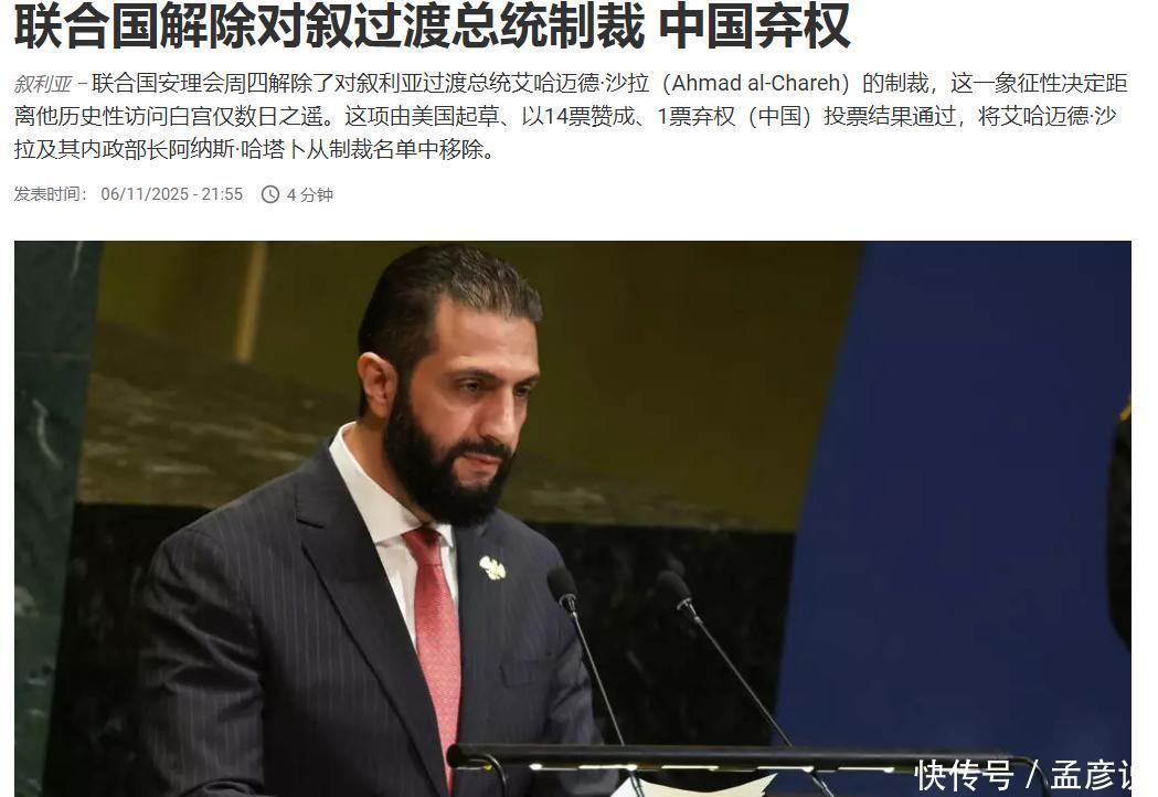 在国际关系的棋局上,叙利亚仿佛是一颗被不断博弈的棋子。11月6日,联合国安理会以14票赞成、1票弃权的结果,轻松通过了第2799号决议,涉及解除对叙利亚部分领导人的制裁。在这场重要的投票中,中国选择了弃权,这一决定引发了广泛关注。